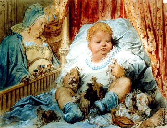 Gustave Doré s’est plu à dessiner des milliers de gravures illustrant les thèmes les plus extravagants : l’Enfer de Dante, les contes de Perrault, les fables de La Fontaine etc. Son imagination était sans limite et son succès populaire était immense.