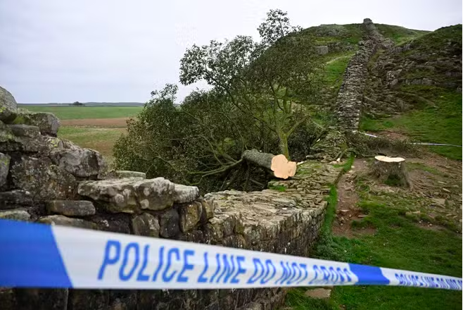 Quatre ans et trois mois de prison pour les deux hommes qui ont abattu un sycomore majestueux situé entre deux collines, le long du mur d’Hadrien, dans le nord de l’Angleterre. Un sycomore de la famille des érables, célèbre pour sa longévité, il avait plus de 100 ans, connu aussi pour avoir figuré dans le film Robin des Bois de Kevin Coster. L’arbre le plus célèbre et l’un des plus aimés d’Angleterre, un trésor national. Les deux vandales n’ont pas su expliquer leur geste autrement que par la recherche d’une certaine célébrité – ils se sont filmés – et ils ont emporté en souvenir un morceau du tronc ! Le procureur du tribunal de Newcastle a qualifié de « débile », le mot est poli, leur action. Mais les deux vandales ne comprennent toujours pas l’émotion suscitée par leur acte. La chute du sycomore a aussi endommagé le mur d’Hadrien, une fortification romaine de 135 km de long, construite entre 122 et 127 après JC, frontière qui a marqué la limite nord de la conquête romaine.