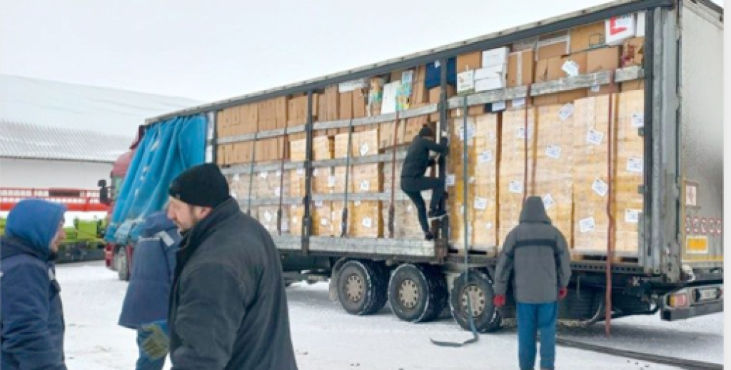 L’arrivée des camions transportant des générateurs t es médicament offerts par le Pape (cardinale Krajewski)