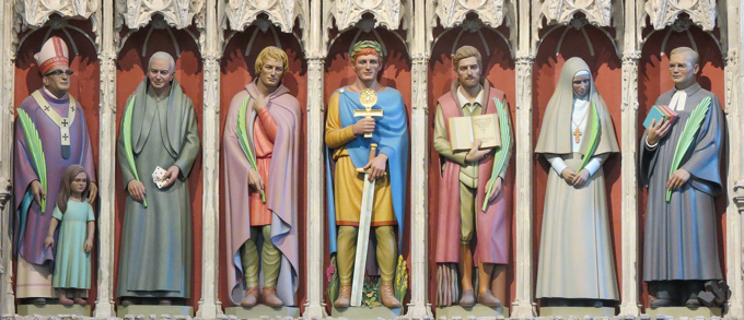 La cathédrale anglicane de Saint-Albans (Angleterre) fait place sur sa façade à sept « saints ». La largeur d’esprit de ses dirigeants a dépassé les limites de l’anglicanisme et a intégré parmi ses saints des hommes et une femme de différentes dénominations